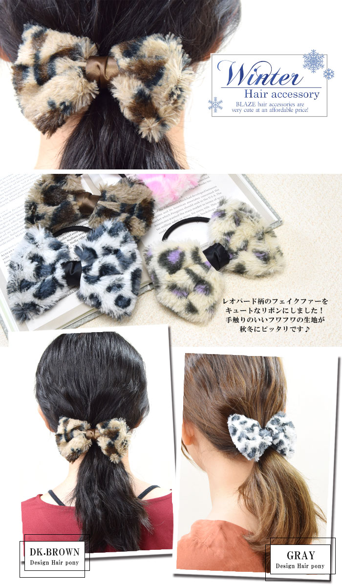 ヘアゴム もこもこ リボン レオ ファー BLAZE ヘアアクセ キッズ 子ども 大きい 大きめ