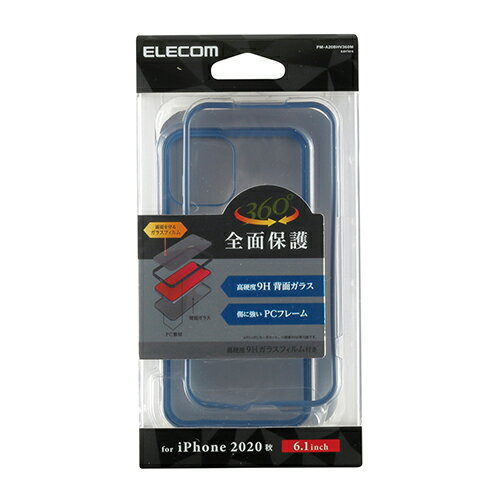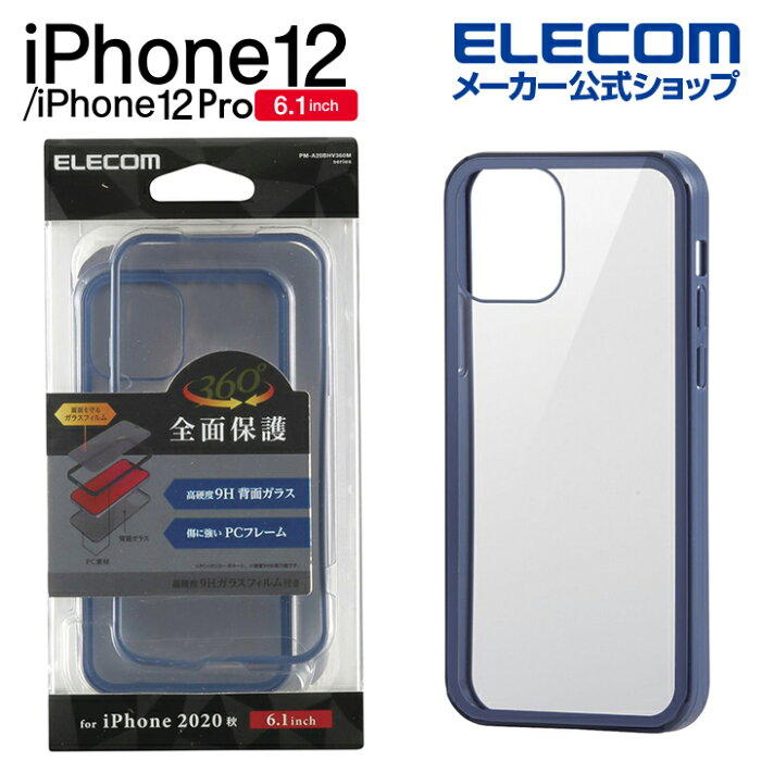 エレコム iPhone 12 / iPhone 12 Pro 用 ハイブリッド ケース 360度保護 背面ガラス アイフォン 12 / アイフォン 12 Pro 新型 iPhone12 pro iPhone 2020 6.1 インチ ハイブリッド ケース カバー ガラス ブルー PM-A20BHV360MBU