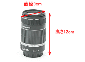 このポーチに入るレンズのサイズ 最大で直径9cm、長さ12cmのレンズが 入ります。